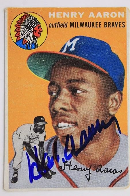 Henry Hank Aaron Braves Hof 1955 Topps 47 Autographed Signed Card Jsa Ebay from i.ebayimg.com Looking to buy hank aaron baseball cards? Willie mays autographed hank aaron autographed jersey hank aaron autographed card hank aaron autographed psa. Prices may vary based on condition, and the type of authenticity that accompanies the signature. Henry louis aaron (born february 5, 1934), nicknamed hammer or hammerin' hank, is an american retired major league baseball (mlb) right fielder who serves as the senior vice president of the atlanta braves. The item hank aaron psa dna coa autograph hand signed perez steele postcard is in sale since friday, september 25, 2020. As for the card, i need more info on it as far as year, brand, and condition. Hank aaron braves 2018 topps baseball card all star patch gold #05 of #50. The hank aaron award is awarded annually to the best overall offensive performer in each league.